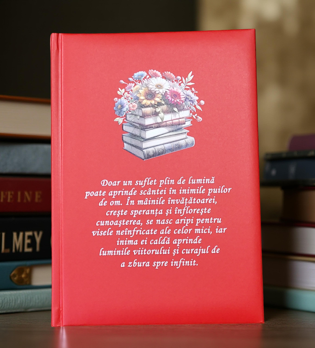 Impartasiti recunostinta si aprecierea pentru doamna invatatoare cu o agenda personalizata ce combina eleganta si functionalitatea! Aceasta agenda unica este un cadou perfect pentru a exprima aprecierea fata de munca dedicata si inspiratia pe care o aduce in vietile elevilor sai.